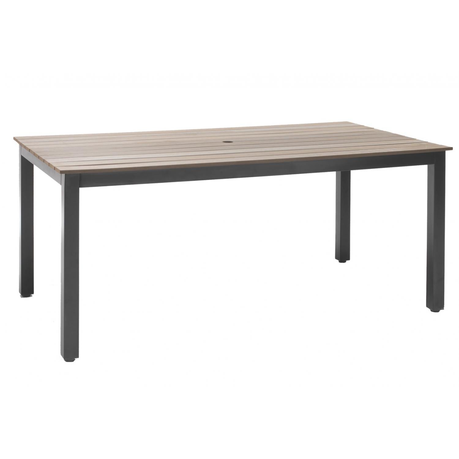 • Engineered Resin Slat Tabletop with Umbrella Hole